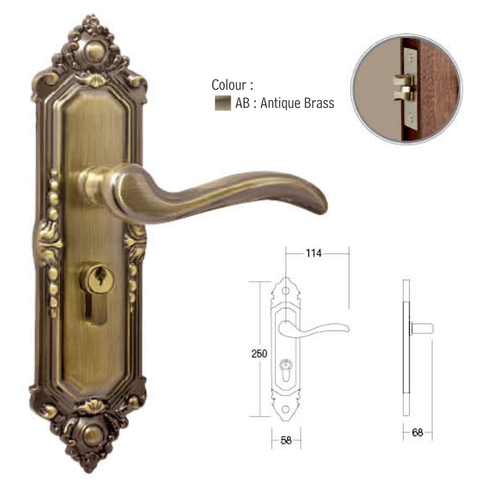 ST GUCHI Tubular Lever On Plate SL 3883 Entrance bahan Zinc Diecast finishing Antique Brass